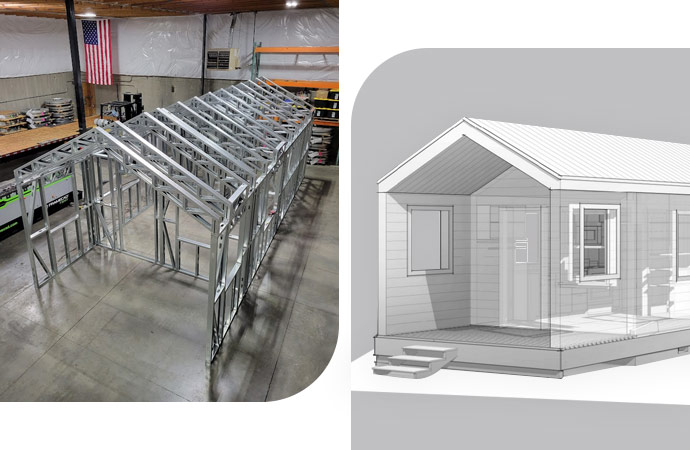 SteelBiltt provides our clients with multiple building options in this space. Utilizing our cold rolled steel technology, you can assemble the home yourself or you can hire a contractor. We can also provide design and engineering services if you're early on in your planning stages. With our panelized approach, tiny homes and ADUs can be stood up in hours, not weeks. Every piece of steel used to build your structure is part numbered, allowing for a very straightforward assembly process. For more information about our tiny homes and ADUs, please contact us at 385-462-8484 or click here
